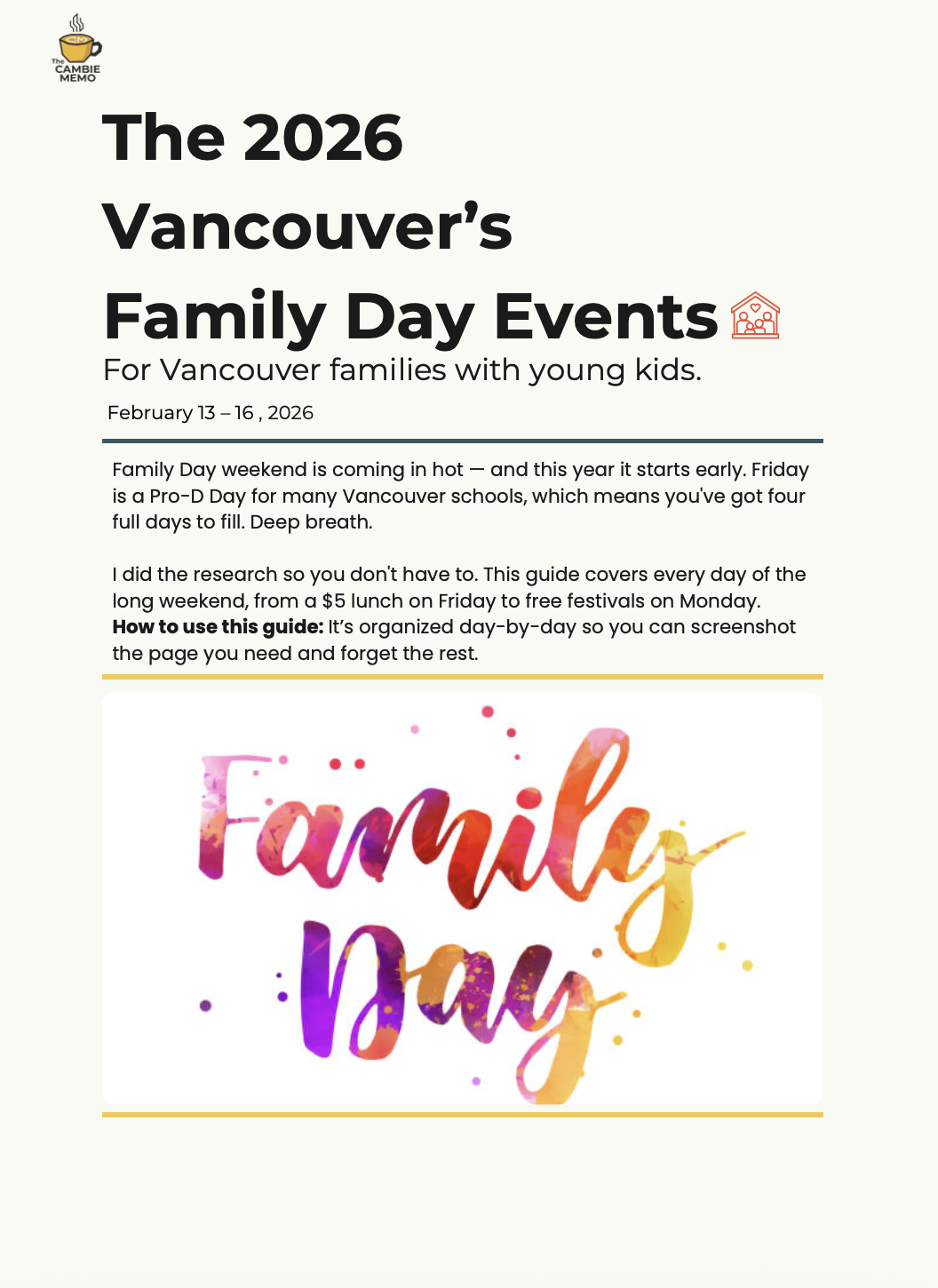 You'll also get The Cambie Memo, a short, practical local email 1–2×/week for families. No spam. Unsubscribe anytime.