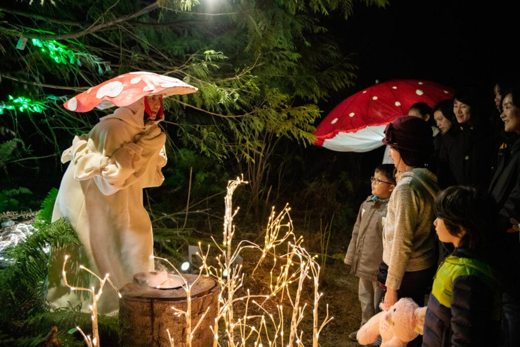 Pacific Spirit Regional Park turns into a glowing forest trail with animal lanterns, campfire marshmallow roasting, drumming, and storytelling characters.