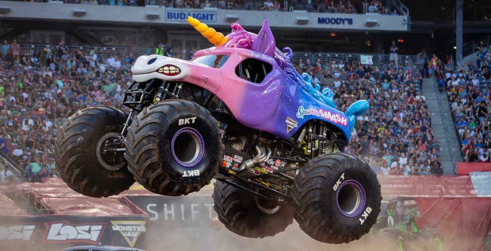 What: Monster Jam (massive trucks doing high-flying stunts).